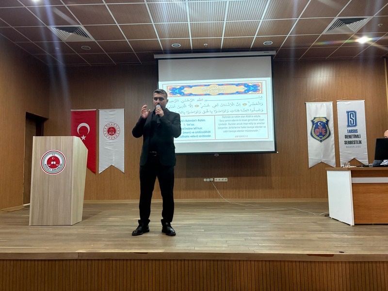 Tarsus Adalet Sarayı Konferans Salonu’nda gerçekleştirilen seminere 80 denetimli serbestlik yükümlüsü katıldı. Program, Ceza İnfaz Kurumu Vaizi Mesut Aydın tarafından verildi.